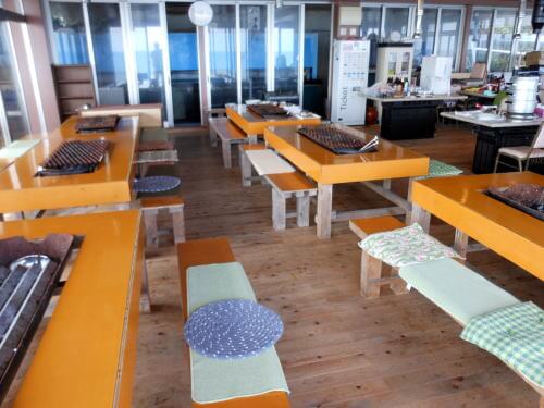牡蠣小屋の瀬々串物産館は、館内の一階に業務用・焼肉テーブルを設置し、皆様に4人用テーブルを、1時間1.100円で御使用頂けます。